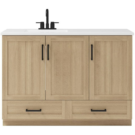 49" x 19" Marien Vanity with Cultured Marble Top - 3 Doors + 2 Drawers, Brown