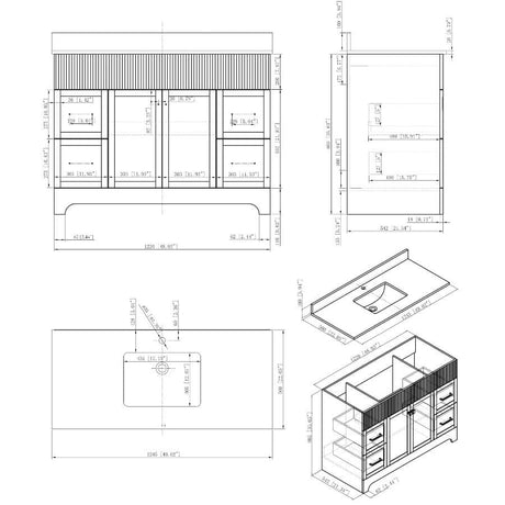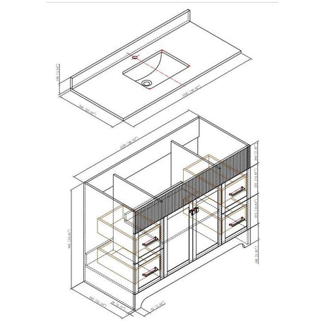 49" W x 22" D Paris Sink Vanity with Calacatta Quartz Stone Top - Four Drawers, Green