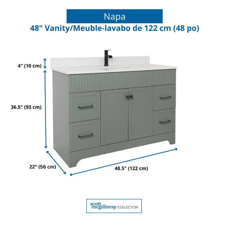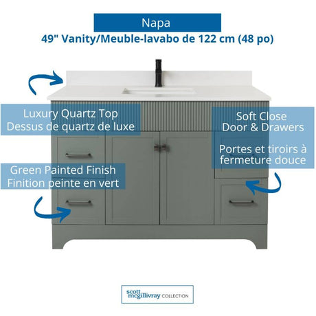 49" W x 22" D Napa Vanity with Cultured Marble Top - 2 Doors + 4 Drawers, Green