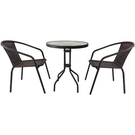 Brown Wicker Steel Frame Bistro Set - 3 Piece