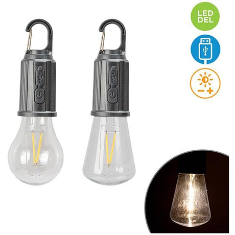 Hanging Dimmable Camp Light Clips - A60 Bulb, USB Rechargeable, Warm White, Assorted Styles
