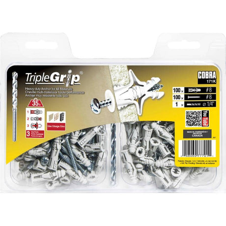 100 Pack #8 Plastic Anchors, with Screws and Bit