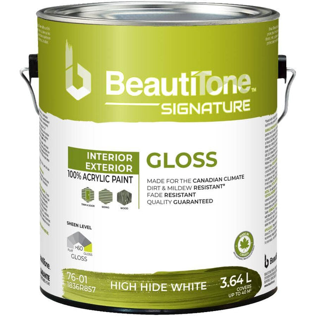 Interior / Exterior Acrylic Latex Gloss Paint - High Hide White, 3.64 L