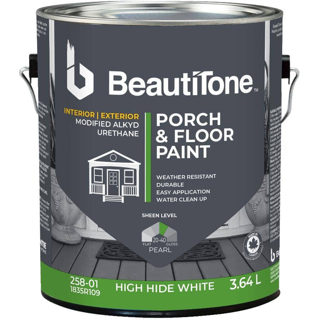 BeautiTone™ Interior/Exterior Modified Alkyd Urethane Porch and Floor Pearl is a self-priming, low odour and low VOC paint. Recommended for wood and concrete floors. Also suitable for vertical surfaces.