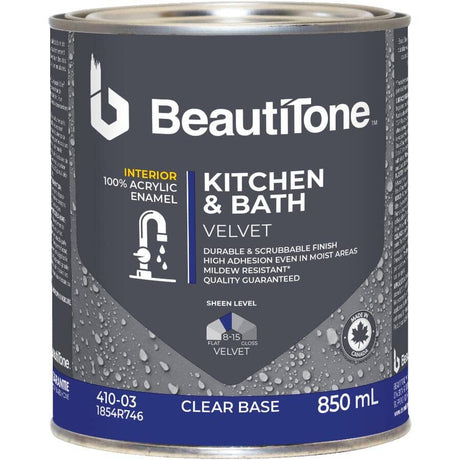 Interior Acrylic Latex Velvet Kitchen & Bath Paint - Clear Base, 850 ml