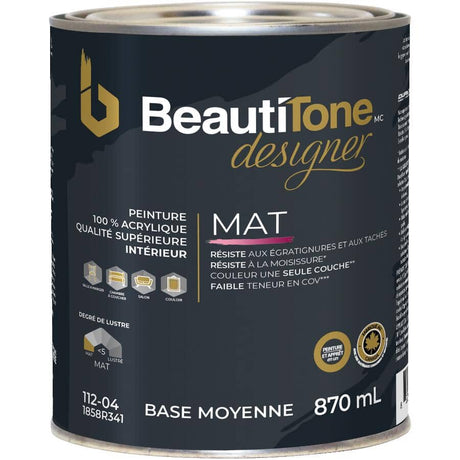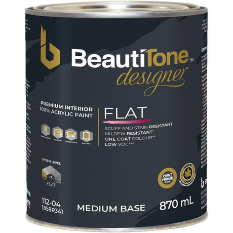 Interior Acrylic Latex Flat Paint & Primer - Medium Base, 870 ml