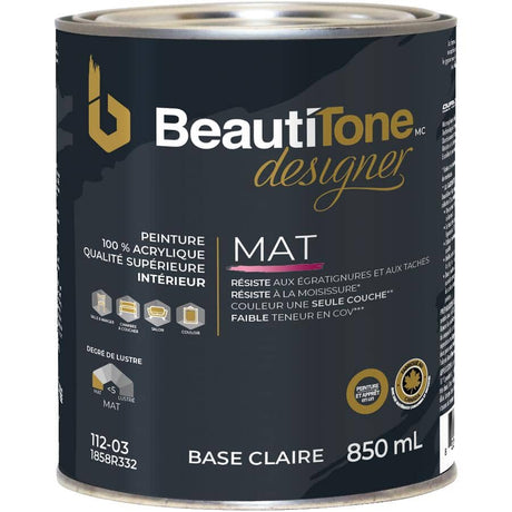 Interior Acrylic Latex Flat Paint & Primer - Clear Base, 850 ml