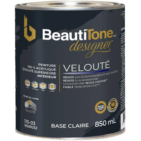 Interior Acrylic Latex Velvet Paint & Primer - Clear Base, 850 ml