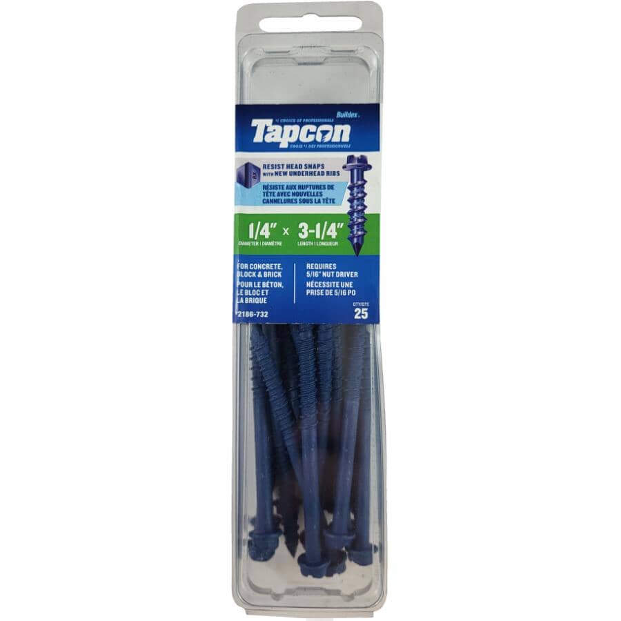 25 Pack 1/4" x 3-1/4" Hex Head Concrete Screws