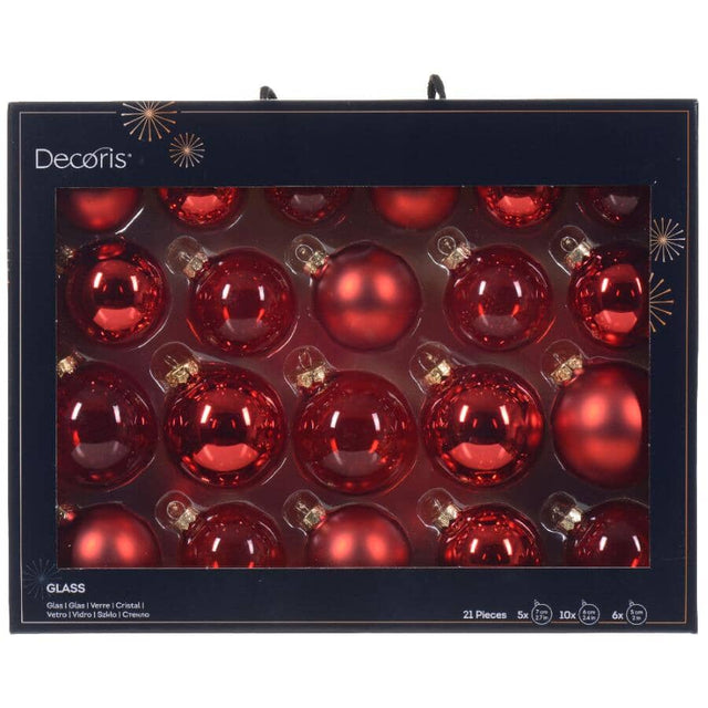 21 Pack Bauble Glass Ornaments - Red