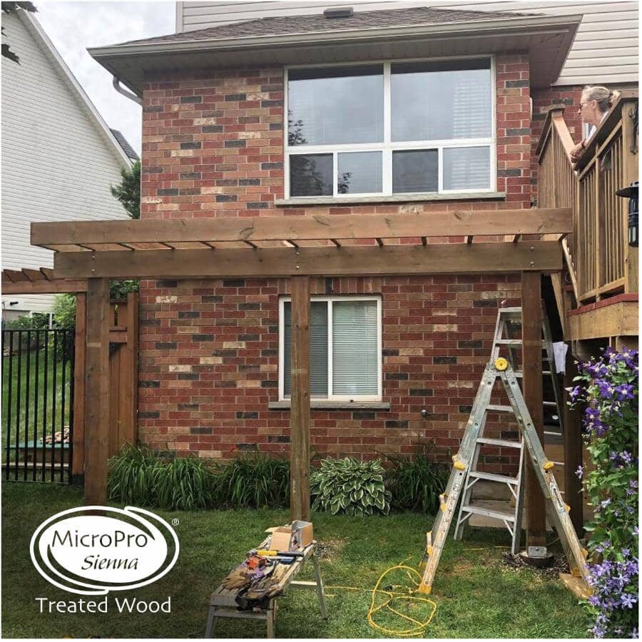 Build your ultimate outdoor oasis with environmentally certified MicroPro Sienna® so you can rest easy knowing your project will withstand the challenges thrown by Mother Nature. The wood is treated using patented MicroPro® micronized copper azole (MCA) which provides protection against rot, decay and termites – without any of the solvents used by traditional pressure treated wood products. MicroPro Sienna®’s signature rich warm brown tone enhances the wood grain and provides a beautifully finished look to decks, pergolas, fences, docks and any outdoor build you’ll be proud of for years to come.