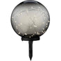 This this solar stake light in ball shape is beautiful to place among the plants or flowers in your garden. The ball is made with a smokey grey finish and inside are 50 micro LED lights with warm white colour lighting. Easy to place in the ground due to the included spike of 3.94" (10 cm). If you remove the stake, you and also use this light on your table, very multifunctional.