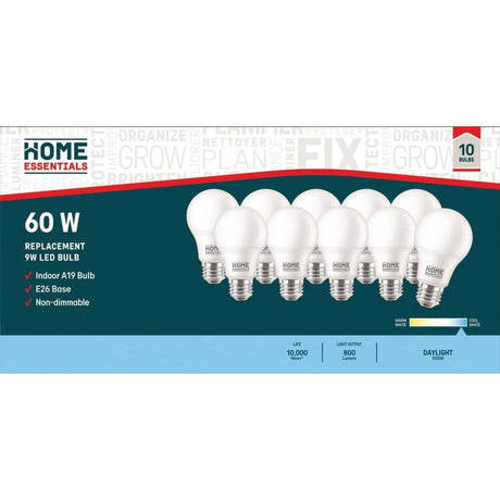9W A19 Medium Base Daylight Non-Dimmable LED Light Bulbs - 10 Pack