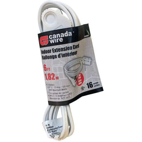 3 Outlet Flat Plug Indoor Extension Cord - White, 1.8 m