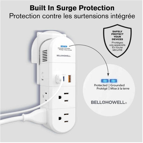 Swivel Power with 6 Outlets - 2 USB & 1 C Charging Ports, White