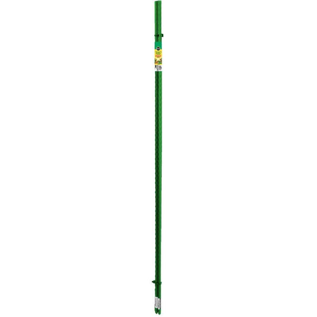 The Miracle-Gro steel stake with a protective coating to prevent rust measures 3-ft in length.