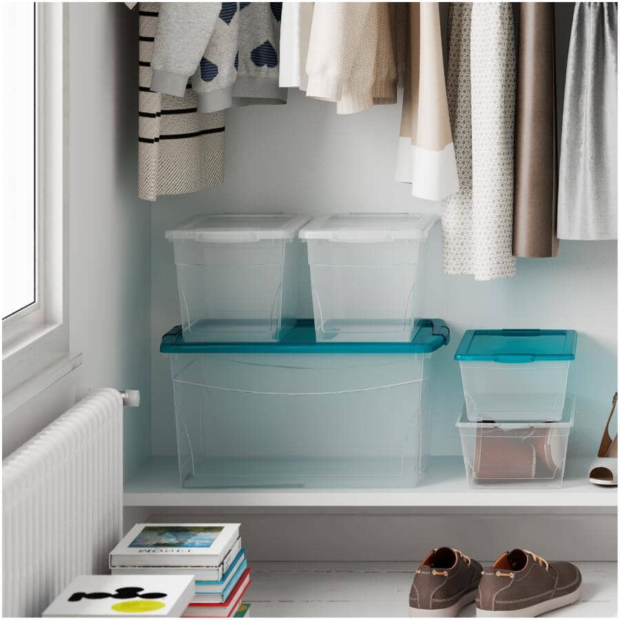 Use this versatile stacking storage box to organize and store all of your belongings in any room or closet. The see-through clear box provides quick content identification.