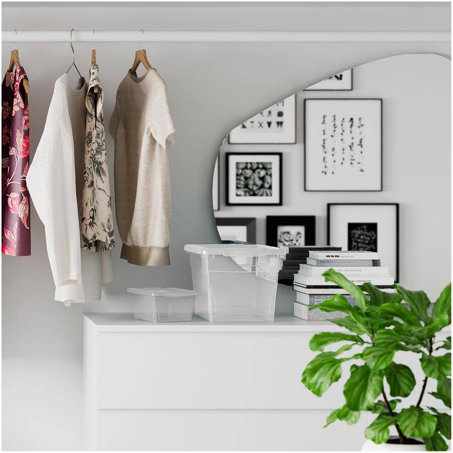 Use this versatile stacking storage box to organize and store all of your belongings in any room or closet. The see-through clear box provides quick content identification.