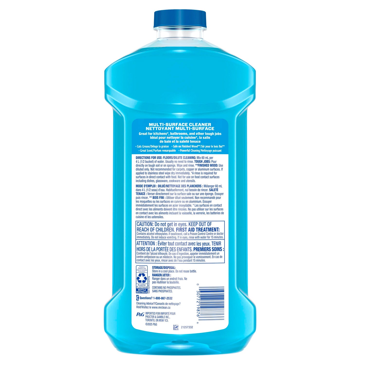 Get a powerful clean and a great scent with Mr. Clean multi-surface cleaner with Unstopables Fresh scent. It cuts through 100% of dirt, grease, and grime, leaving the scent of Unstopables Fresh liquid cleaner in its dirt-forsaken place. It works all around the house on everything from linoleum, to tile and finished hardwood floors, to toilets and bathtubs, and even garbage cans.