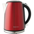 Make the perfect cup of tea or get hot water in minutes for any of your food prep needs with the Betty Crocker Signature Series Red Metallic 1.7L Stainless Steel Electric Kettle. Its cordless design and 360-degree rotating base provides ease for pouring and serving and it features a visible water window and an auto-off with boil dry protection for years of reliable operation.