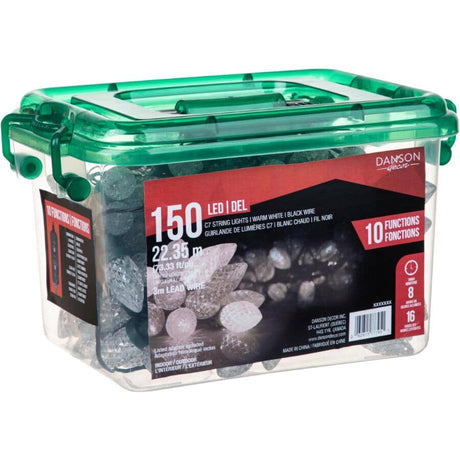 C9 Light Set with Green Wire - Pure White, 150 LEDs