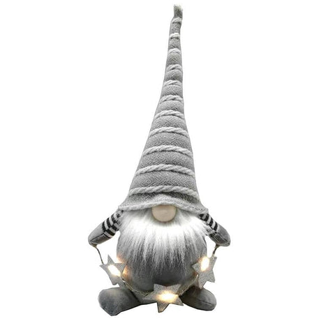 15.75" Grey Striped Gnome Tabletop Decor - with LED Star Garland