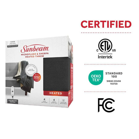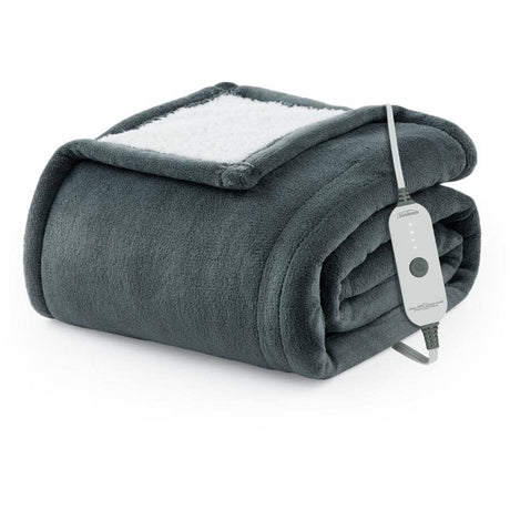 Microplush Sherpa Electric Heated Throw, Dark Shadow - 50" x 60"