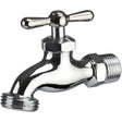 The chrome plated bibb faucet is ideal for indoor use or outdoor use in milder climates. Features an easy-to-use multi-turn handle to control water flow and is made of brass with a chrome plated finish. Easily connect to 1/2" pipe and threads onto a 1/2" garden hose.