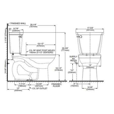 4.8 L Cadet Pro High Efficiency Round Toilet - 16.5" Right Height, White