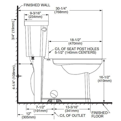 4.8 L Decor High Efficiency Elongated Toilet - with Concealed Trapway, 16.5" Right Height, White