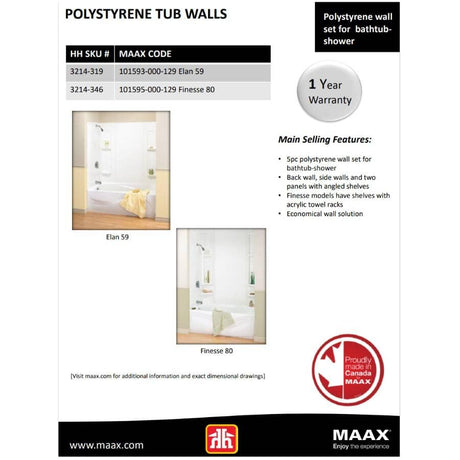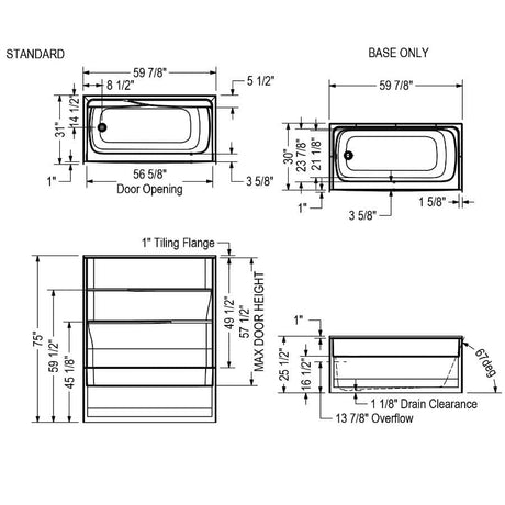 60" x 33.5" Liberty 1 Piece Acrylic Tub Shower - with Left Hand Drain, White
