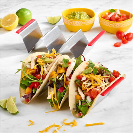 Stainless Steel Taco Holder with Red Handles - 2 Pack