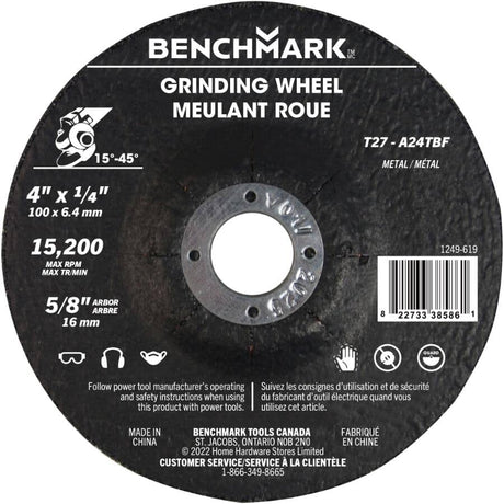 4" x 1/4" x 5/8" Depressed Centre Metal Grinding Wheel