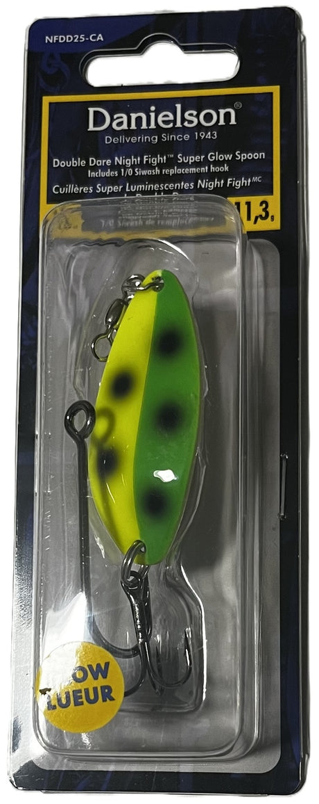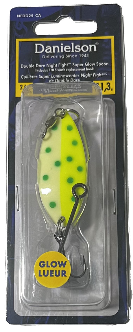 Danielson NFDD25-CA-TKO Night Fight Double Dare Spoon, 2/5oz, w/Treble & Siwash hook, TKO Super Glow