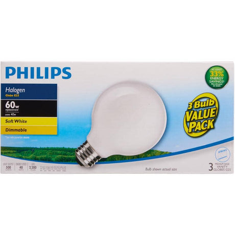 40W G25 Medium Base Soft White Dimmable Halogen Light Bulbs - 3 Pack