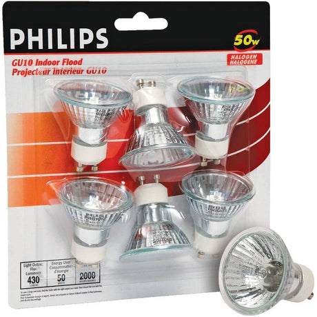 50W MR16 GU10 Base Halogen Flood Light Bulbs - 6 Pack