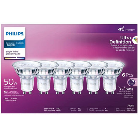 50W Ultra Definition PAR16 Bright White GU10 Dimmable Light Bulbs - 6 Pack