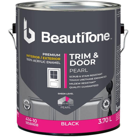 Interior / Exterior Acrylic Latex Pearl Trim & Door Paint - Black, 3.7 L