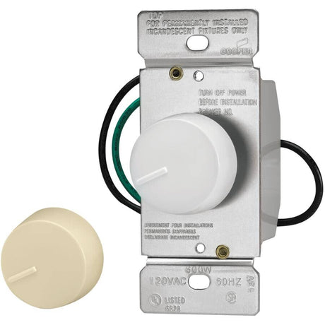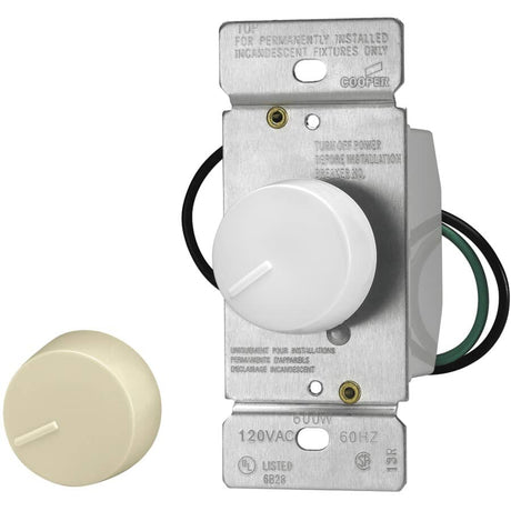Single Pole Rotary Dimmer Switch with White and Ivory Knobs