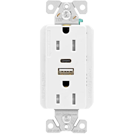 USB A/C Chargers with 15 Amp Tamper Resistant Decorator Receptacle - 5 Amp, White