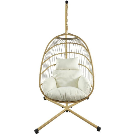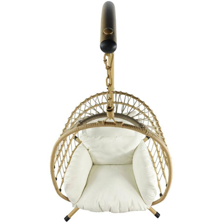 Resin Wicker Hanging Egg Chair with Stand and Cushions - Beige