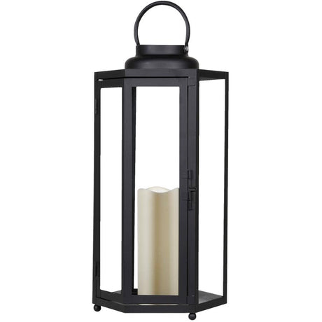 21" Black Metal Lantern - with Battery Operated LED Candle