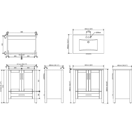 30" W x 18" D Clare Vanity with Vitreous China Top - Grey