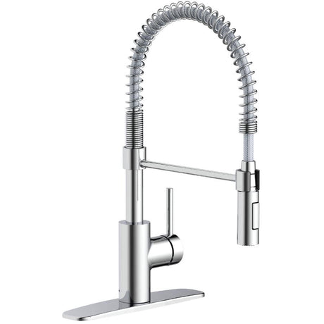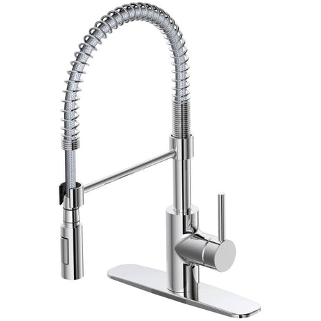 Favos Single Handle Pull-Down Kitchen Faucet with Dual Spray + Spring Spout - Chrome