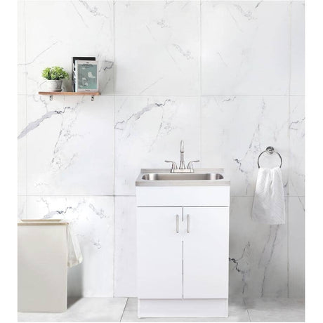 31.5" x 21.75" Laundry Cabinet with Stainless Steel Sink - White