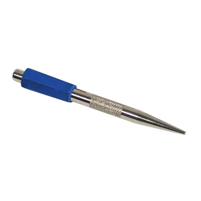A nail set is a small tool that allows you to hammer a finishing nail flush to the surface, while keeping the hammer head a safe distance away from the wood. The pointed end is round enough to fit on the head of a finishing nail.