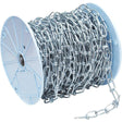 KingChain Tenso Chain, also known as Double Loop, Lion or Knotted chain, is made from low carbon steel, is not heat-treated and has a standard zinc plated finish. This weldless chain is manufactured to NACM standards. This type of chain is frequently used on playground and gym equipment, as cattle ties on farms and form leashes in kennels. It is also used in many general-purpose applications, such as on gates, doors, porch swings and tie-out chains. Tenso Chain is useful because it will not bind or kink when rotated. Safe Work Load (SWL) of 255 lb (116 kg). Never exceed the Safe Work Load (SWL). **NOTE** Do not use for overhead lifting.