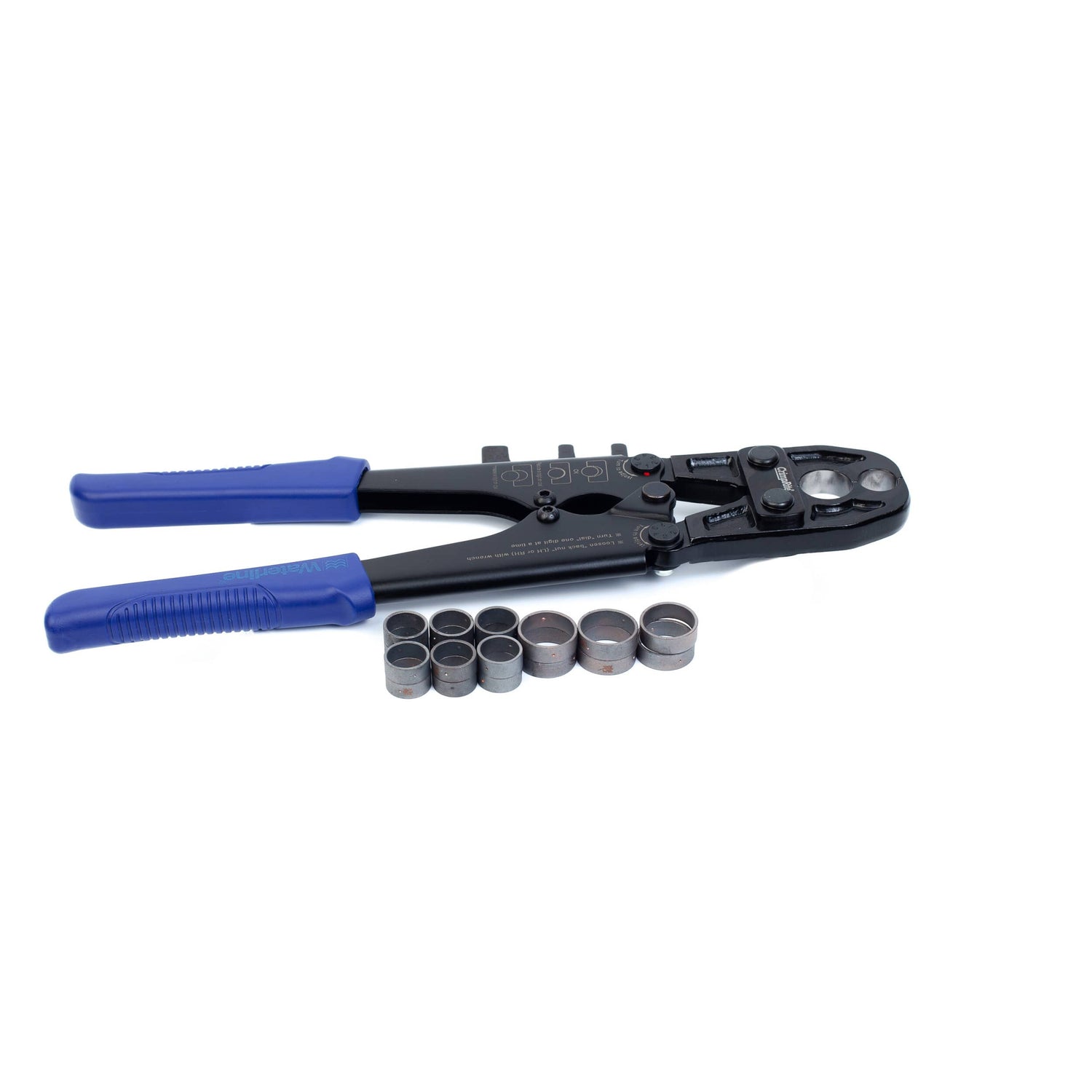 The CrimpRite 1/2" and 3/4" combo crimp tool is a 2-in-1 tool designed to secure 1/2" and 3/4" copper crimp rings into place within PEX piping systems. There are no loose components, jaws to change, or adjustments to be made to create either size connection. Connections may be checked for security using the Go/No-Go Gauge (included). Twelve (12) 1/2" copper rings and six (6) 3/4" copper rings are also included.