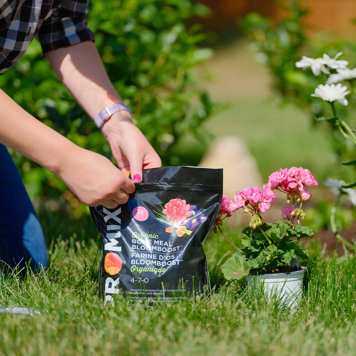 PRO-MIX® Organic Bone Meal BLOOMBOOST 4-7-0 is a fertilizer that is ideal for transplanting all flowers, fruits, vegetables, and shrubs. It is a great source of nitrogen and phosphorus that will help you grow bigger plants. It will also make roots stronger. This product can be used either indoors or outdoors and will improve greening, growth of foliage and flowering. Will also work with herbs. Comes in a 1.2 kg bag.
