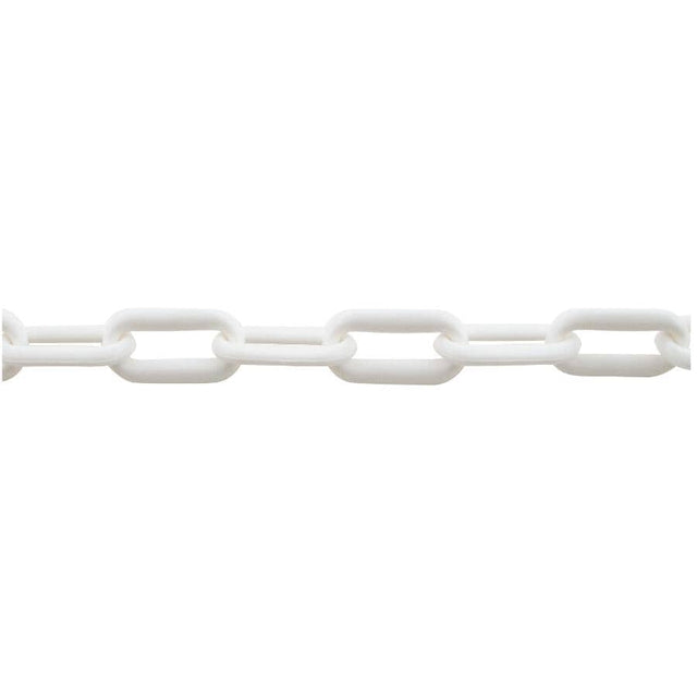 KingChain® plastic chains are made of High-Density Polyethylene (HDPE), so they are lightweight, strong and durable. This chain is the go-to for connecting safety signage and crowd-control barriers. Use it to create a barrier to protect patrons and discourage unauthorized access. It's easy to cut, so you can customize the length to close off short or long distances without costly investments. This light-duty, all-weather plastic chain is good for indoor or outdoor use and has UV-additives to reduce colour fading. It will not rust and it is recyclable. **NOTE** Do not use for overhead lifting.